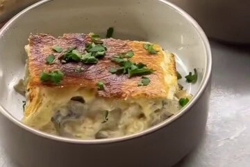 Рецепт быстрого ужина: слоеный картофельно-куриный пирог без теста и духовки.