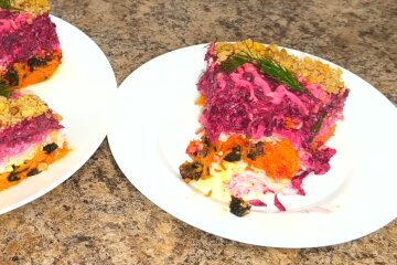 "Діана" - саме такий варіант. Листковий, ефектний, яскраво-буряковий і напрочуд гармонійний. У ньому немає важких інгредієнтів, зате є ніжність, хрускіт горіхів і той самий баланс, який робить страву святковою.