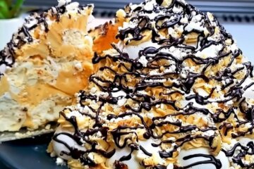 За бажанням - тонкий струмок розтопленого шоколаду по вершині. Гарно? Дуже. Смачно? Не вагайтеся.