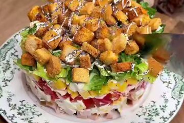 Цей салат чудово заходить і на свята, і на звичайний вечір, коли хочеться чогось "не як завжди". Він виглядає ефектно шарами, пахне так, що на кухню починають заглядати навіть ті, хто просто чай прийшов попити, і готується без танців з бубном.