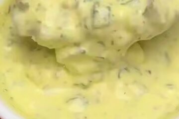 Основа тут проста і доступна: чотири столові ложки сметани краще густої, без зайвої кислинки. До неї додаються два заздалегідь відварені жовтки: саме вони дають соусу щільність і м'яку, майже кремову текстуру. За аромат відповідає часник - два зубчики, не більше, щоб він не перетягнув увагу на себе. Кріп потрібен свіжий, невеликий пучок, він дає той самий «домашній» смак. Зерниста гірчиця у кількості однієї чайної ложки додає пікантності та легкої гостроти. І, нарешті, солоний огірок – один, дрібно нарізаний, щоб у готовому соусі відчувалися акуратні шматочки.