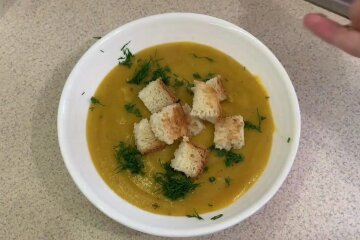 Ось і все, викладіть суп-пюре на тарілку і подайте його разом з приготованими реберцями - вийде ситна та ароматна страва.